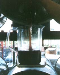 麦芽を取り出し、ストレーナーを通して濃縮液を入れる。